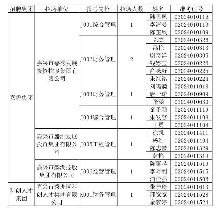 嘉興市(shì)秀洲區(qū)國(guó)有(yǒu)企業(yè)公開(kāi)招聘工(gōng)作(zuò)人(ré§n)員(yuán)筆(bǐ)試工(gōng)作(zuò)已經結束,現(xiàn)将入圍資格複審人(rén)員(yuán)名單公布如(rú)≤下(xià):