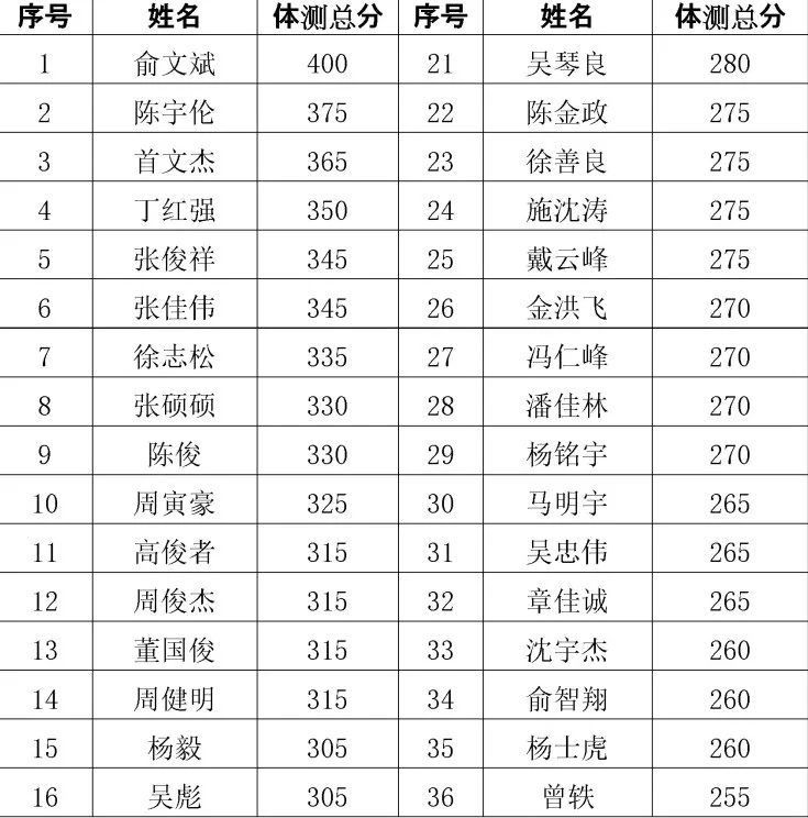 (二)巡邏處突崗位(按體(tǐ)測總分(fēn)排序)