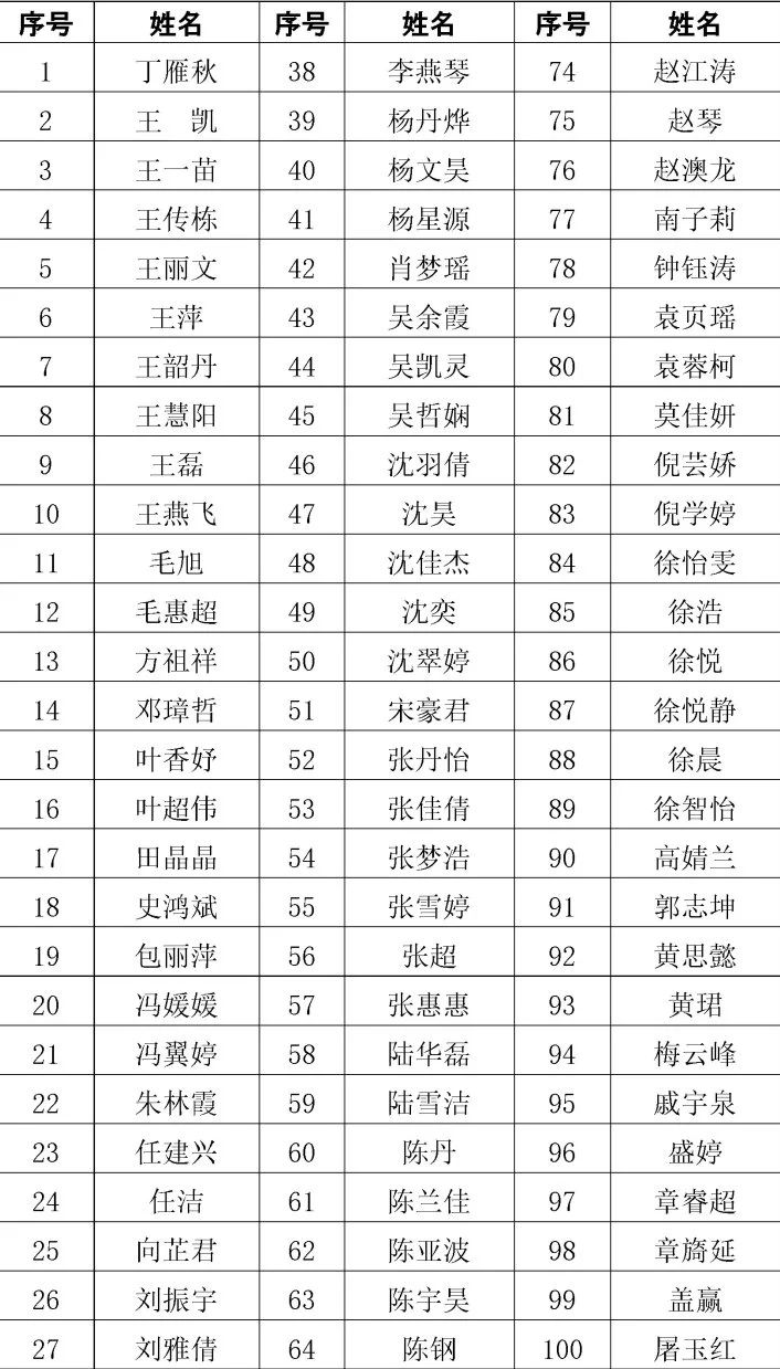 考場(chǎng)2:南(nán)湖(hú)區(qū)分(fēn)局交通(tōng)警察大(dà)隊巡特警大(dà)隊(南(nán)湖(hú)區(qū)錦帶河(hé)路(lù)2→566号),考生(shēng)名單如(rú)下(xià)。