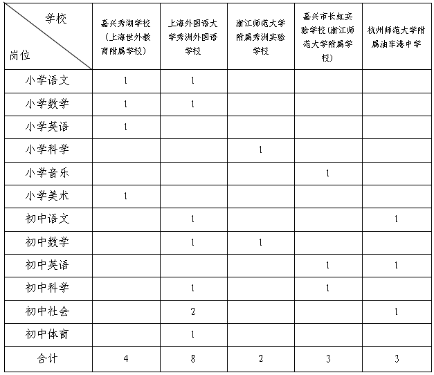 嘉興秀湖(hú)學校(xiào)(上(shàng)海(hǎi)世外(wài)教育附屬學校(xiào))、上(shàng)海(hǎi)外(wài)國(guó)語大(dà)學秀洲外(wài™)國(guó)語學校(xiào)、浙江師(shī)範大(dà)學附屬秀洲實驗學校(xiào)、嘉興市(shì)長(cháng)♦虹實驗學校(xiào)(浙江師(shī)範大(dà)學附屬學校(xiào))、杭州師(shī)範大(dà)學附屬油車(chē)港中學等5所學校(xiào)共選聘≥教師(shī)20名。具體(tǐ)選聘單位、崗位如(rú)下(xià)表: