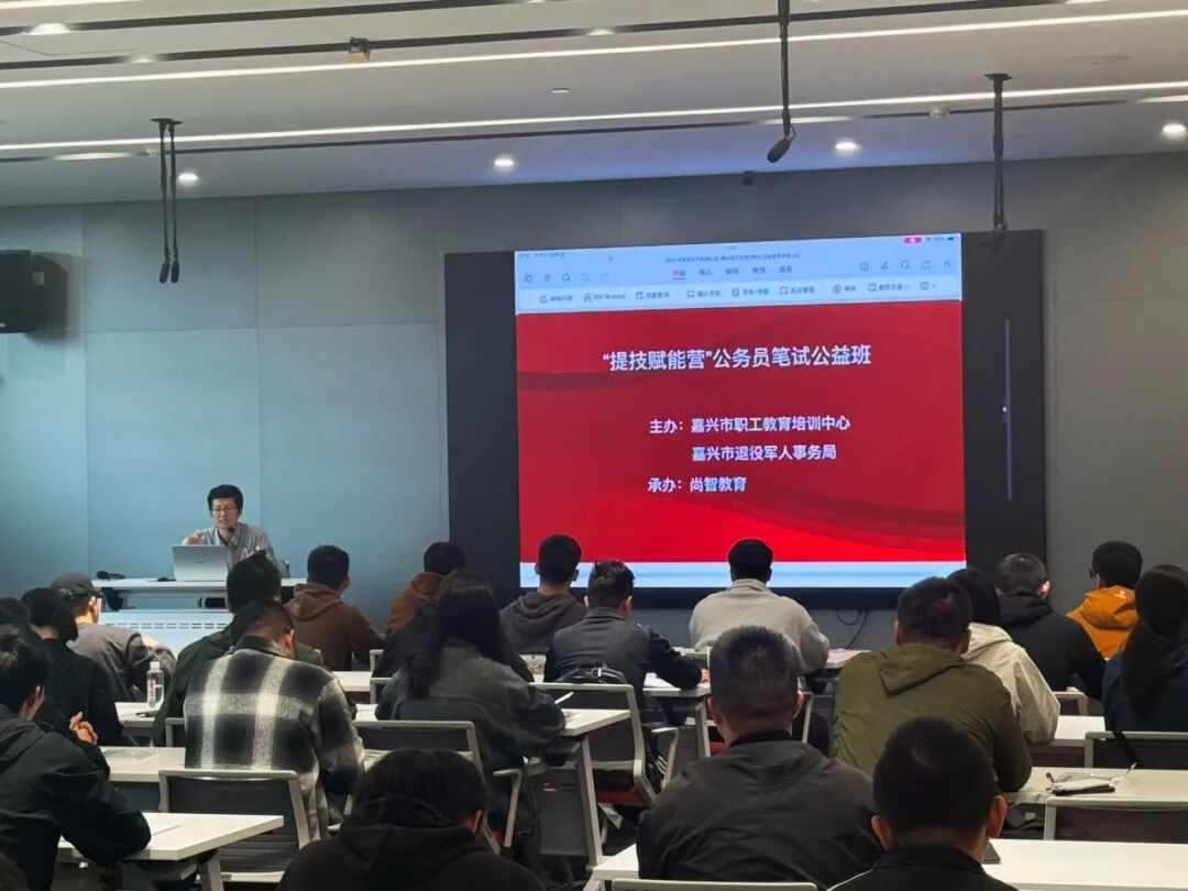 尚智教育聯合嘉興市(shì)總工(gōng)會(huì)和(hé)嘉興市(shì)退役軍人(rén)事(shì)務局進行(xíng)公務員(yuán)筆(bǐ)試公§益講座的(de)報(bào)道(dào):