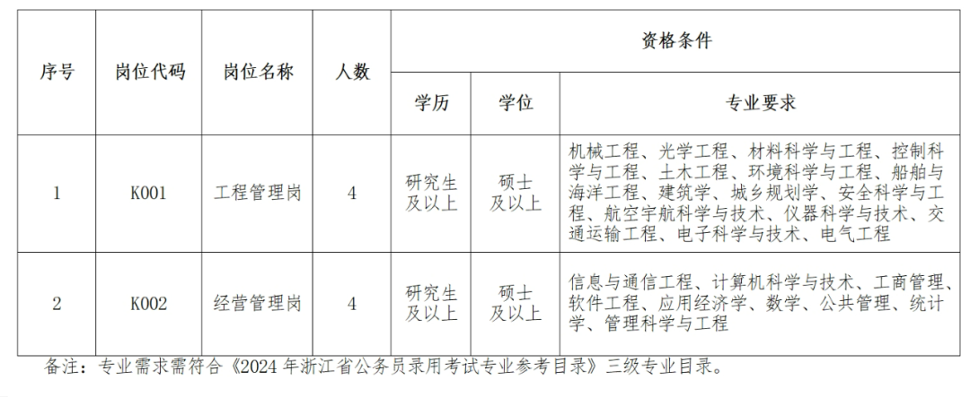 (2)招聘崗位所需專業(yè)(學科(kē))要(yào)求參考 2024 年(nián)浙江省公務員(yuán)錄用(yòng)♦考試專業(yè)的(de)三級專業(yè)目錄,對(duì)應聘人(rén)員(yuán)所學專業(yè")名稱與專業(yè)要(yào)求不(bù)一(yī)緻的(de),由招聘單位根據所學專業(yè)方向審核确定。