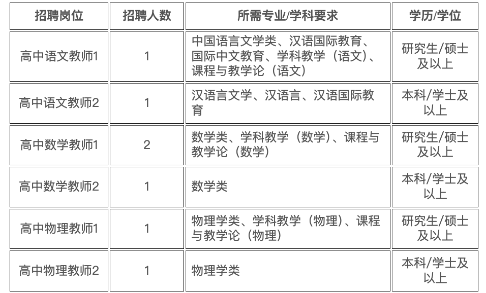 本次公開(kāi)招聘推出崗位6個(gè),計(jì)劃招聘教師(shī)14名。具體(tǐ)的(de)₩招聘崗位、人(rén)數(shù)和(hé)資格條件(jiàn)如(rú)下(xià):