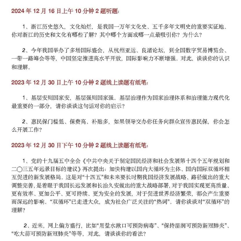 曆年(nián)面試真題