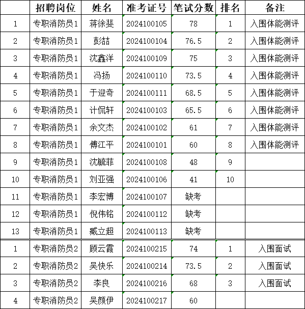 王江泾鎮2024年(nián)公開(kāi)招聘專職消防員(yuán)筆(bǐ)試成績公示