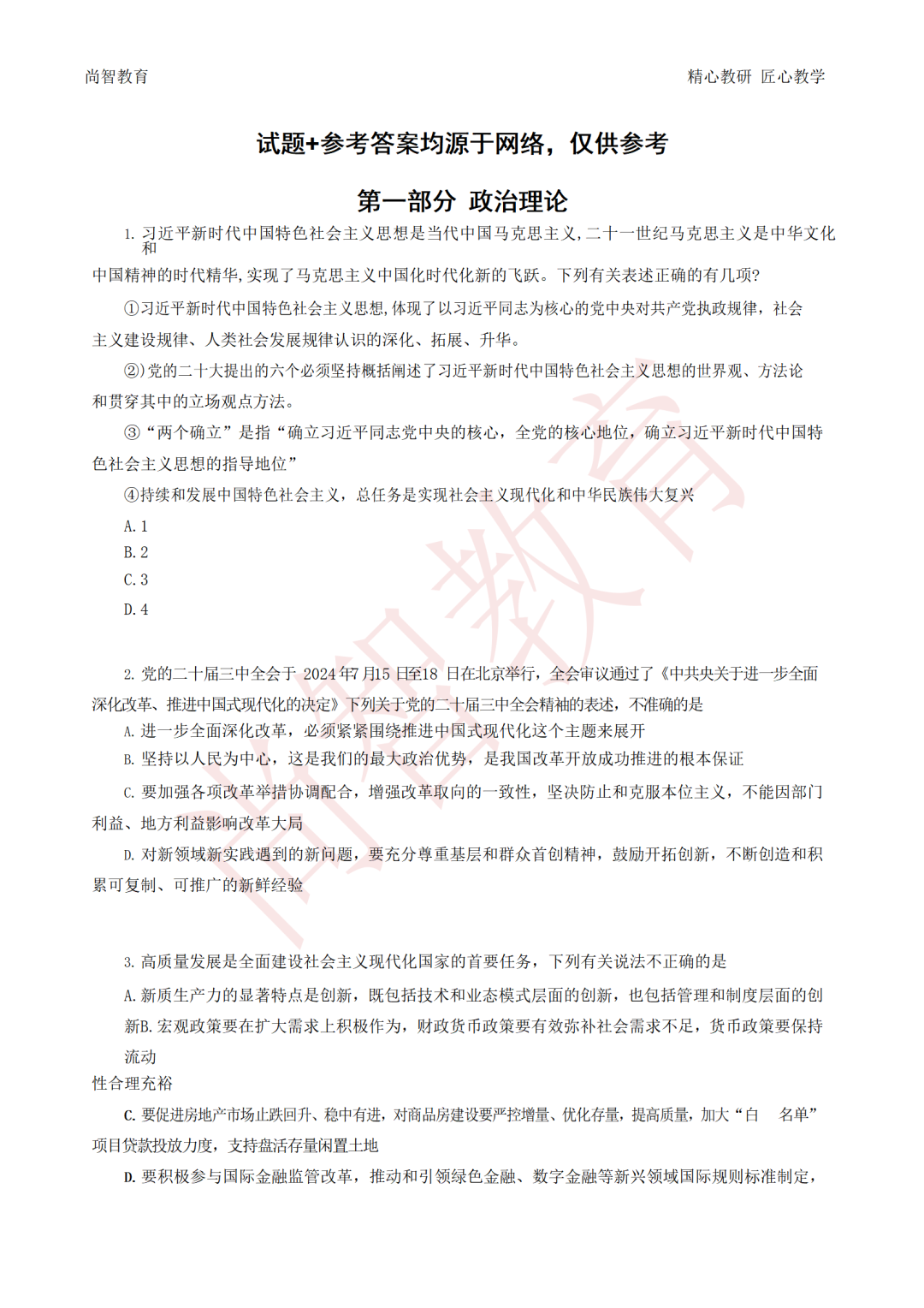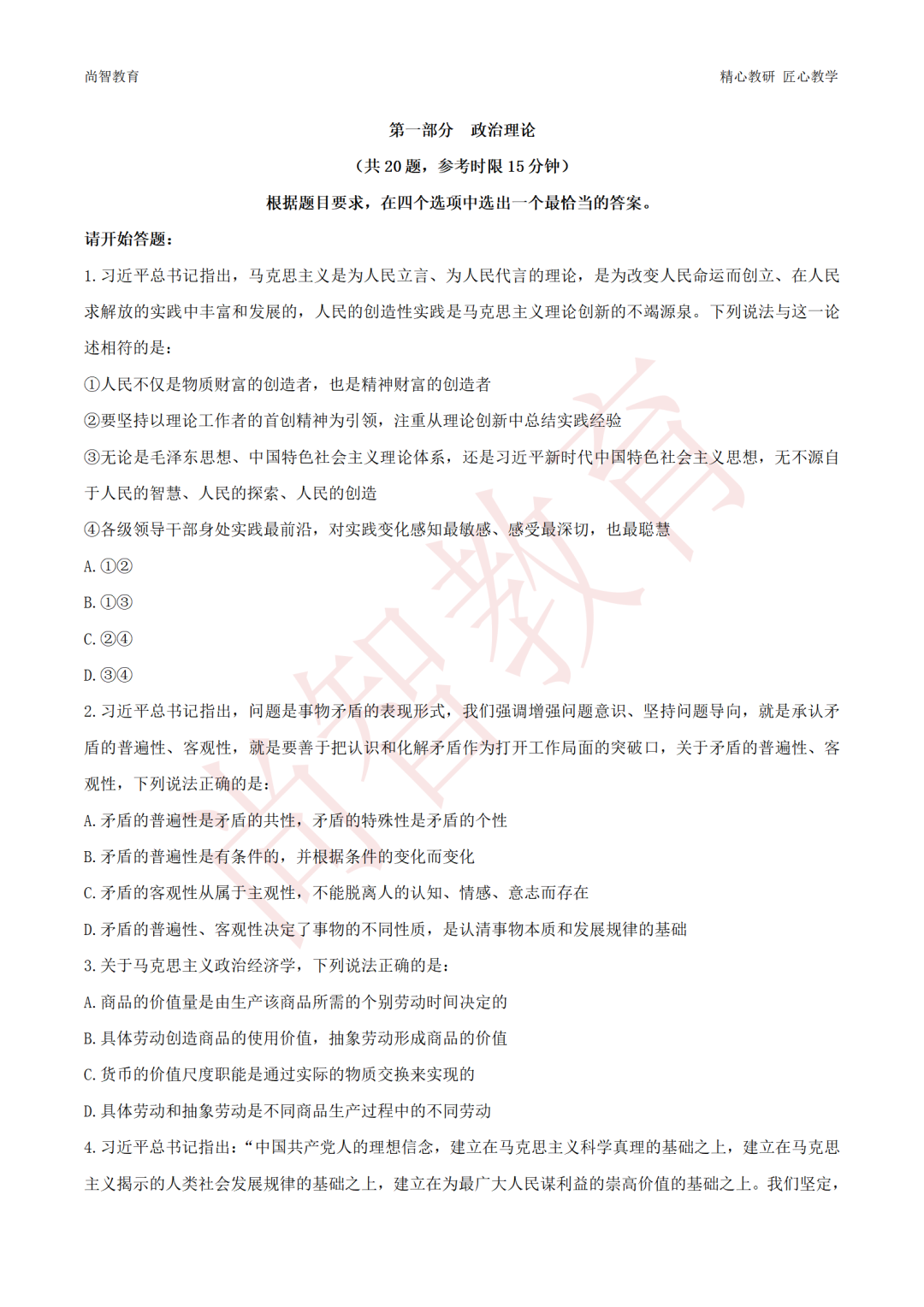 2025年(nián)國(guó)考政治理(lǐ)論題型