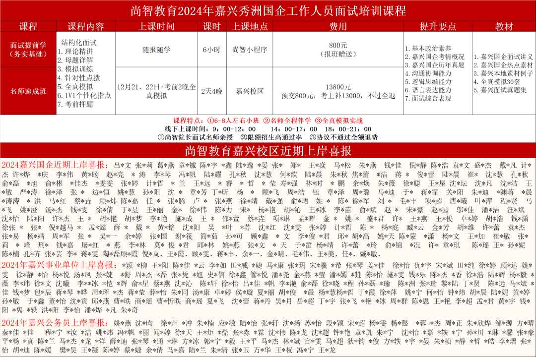 嘉興市(shì)秀洲區(qū)國(guó)有(yǒu)企業(yè)公開(kāi)招聘工(gōng)作(zuò)人(ré§n)員(yuán)筆(bǐ)試工(gōng)作(zuò)已經結束,現(xiàn)将入圍資格複審人(rén)員(yuán)名單公布如(rú)≤下(xià):
