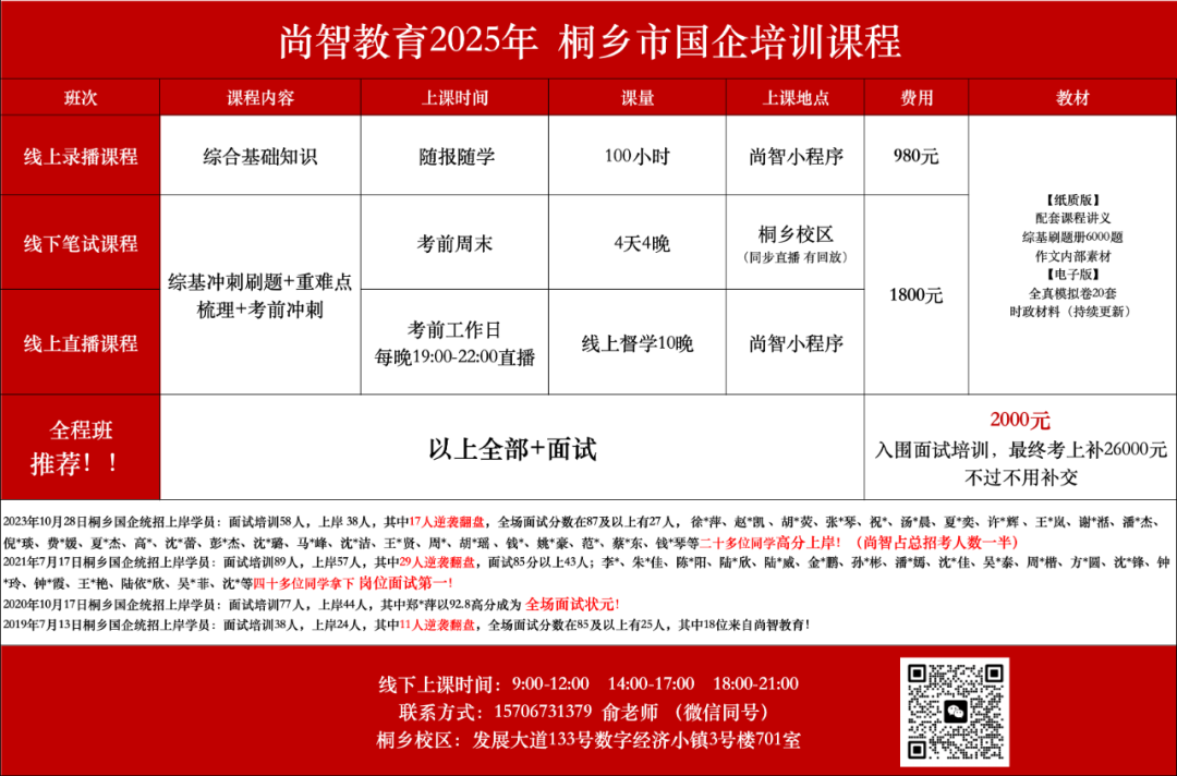 下(xià)一(yī)篇:2025年(nián)桐鄉(xiāng)市(shì)國(guó)企面試培訓課程