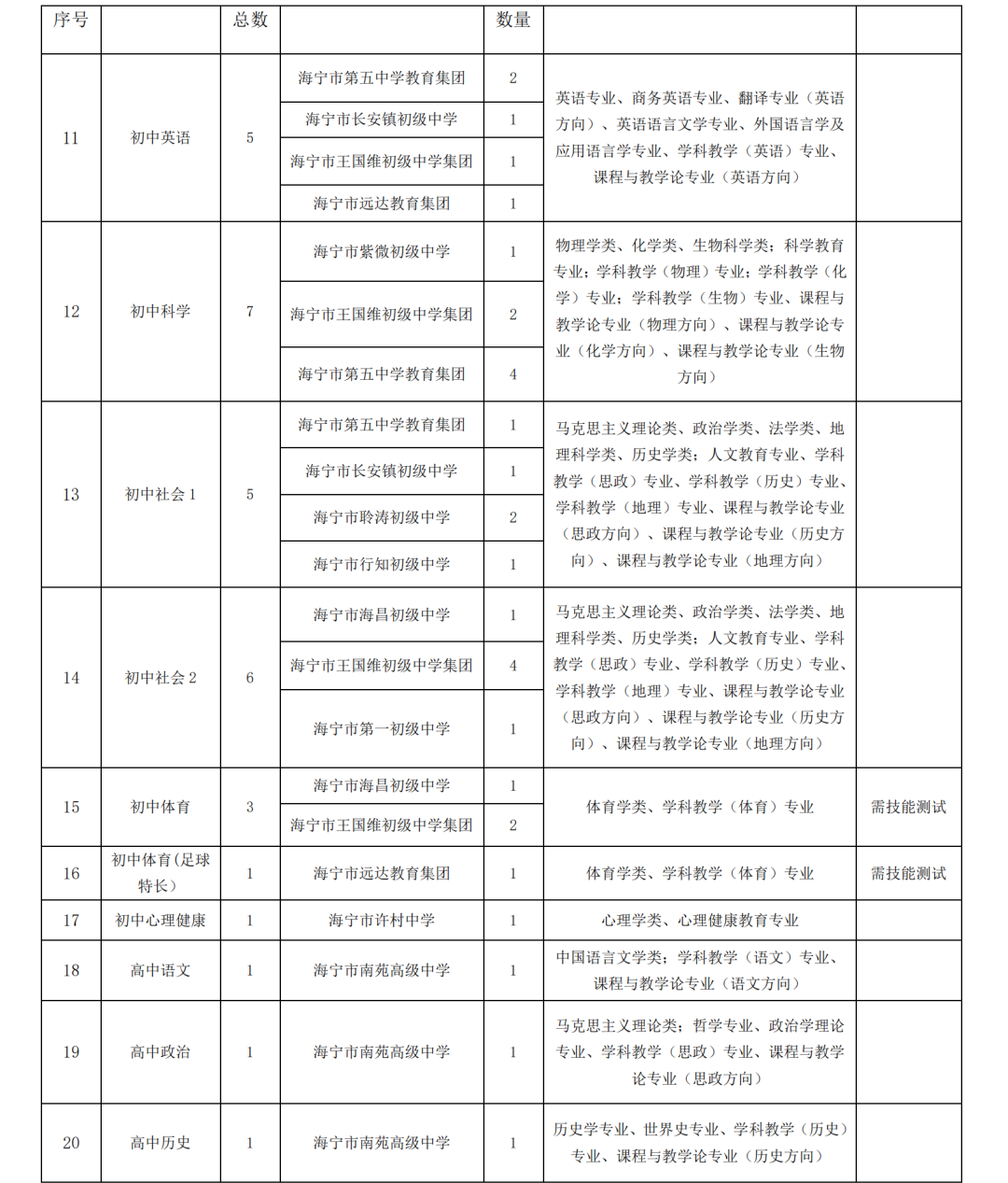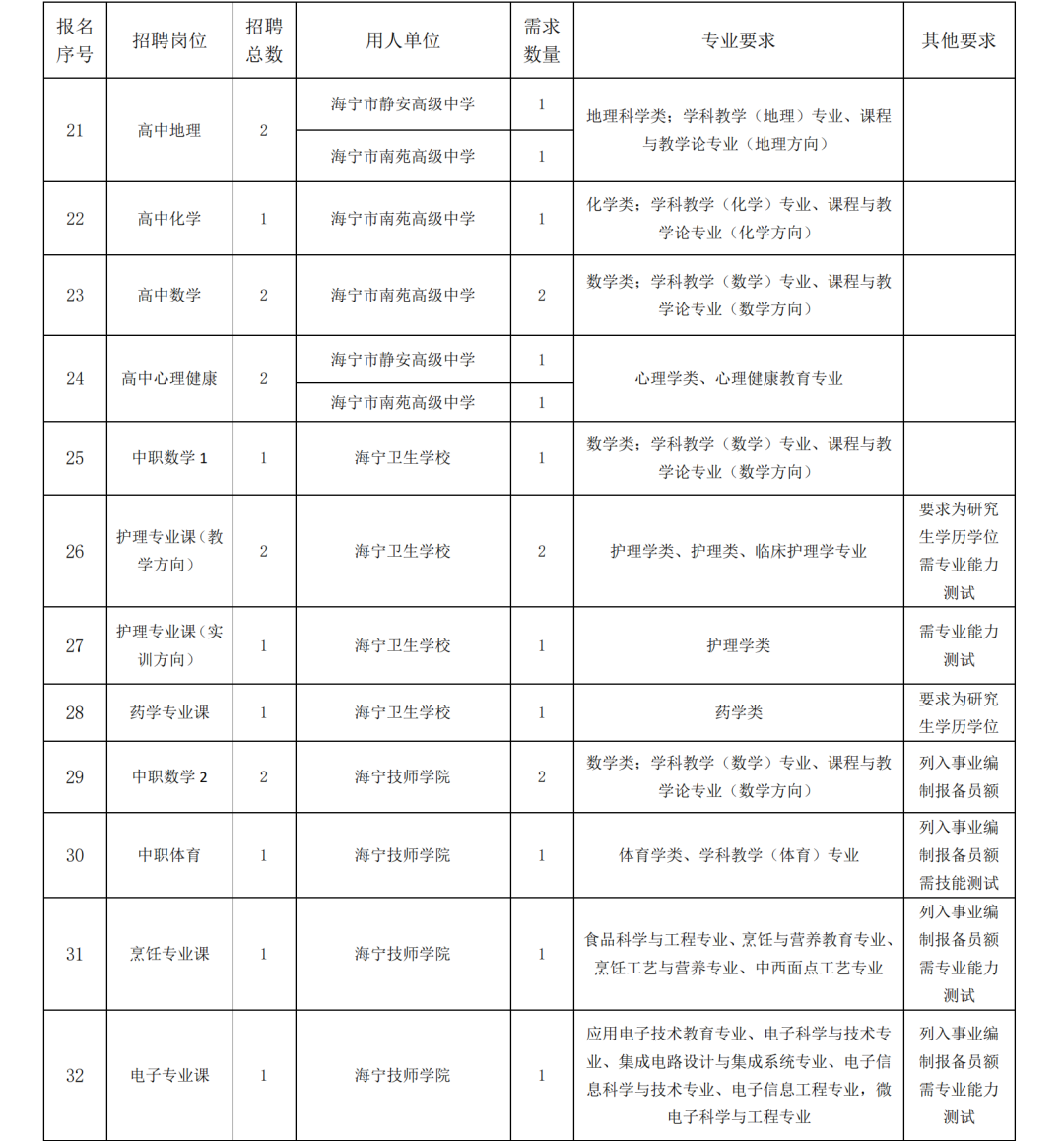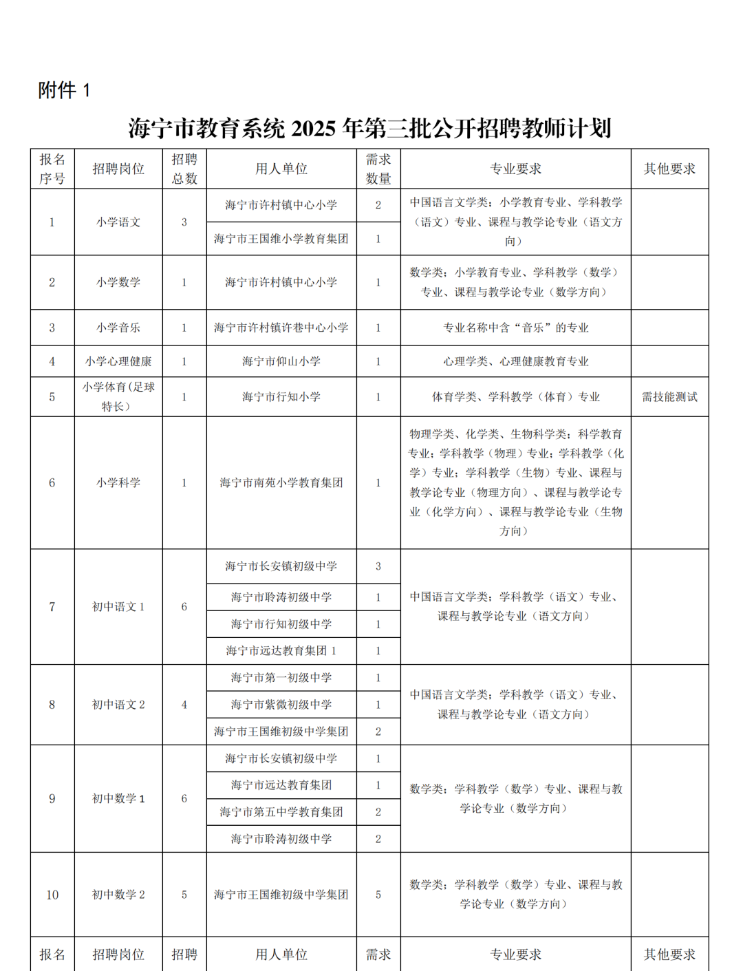 7.崗位所需專業(yè)要(yào)求:詳見(jiàn)附件(jiàn) 1《海(hǎi)甯市(shì)教育系統 2025年(nián)第三批公開(kāi)招聘教師(shī)計(jì)劃》。