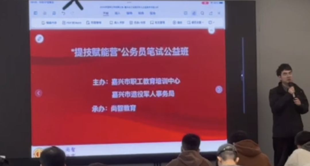 尚智教育聯合嘉興市(shì)總工(gōng)會(huì)和(hé)嘉興市(shì)退役軍人(rén)事(shì)務局進行(xíng)公務員(yuán)筆(bǐ)試公§益講座的(de)報(bào)道(dào):