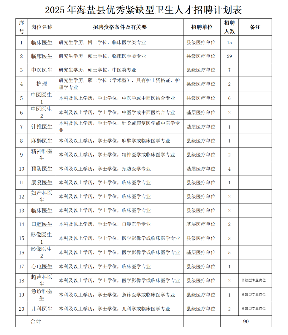因工(gōng)作(zuò)需要(yào),根據《海(hǎi)鹽縣事(shì)業(yè)單位公開(kāi)招聘人(rén)員(yuán)暫行(xíng)辦法》(鹽委辦〔2007〕40号)和(₩hé)《關于進一(yī)步加強衛生(shēng)人(rén)才隊伍建設的(de)若幹意見(jiàn)》(鹽政辦發〔2023〕22号)等有(yǒu)關精神,并報(bào)請(qǐng)≠縣有(yǒu)關部門(mén)核準,決定赴有(yǒu)關高(gāo)等醫(yī)學院校(xiào)招聘優秀、緊缺型衛生(shēng)專技(jì)人(rén)才,現(x≠iàn)就(jiù)有(yǒu)關事(shì)項公告如(rú)下(xià):