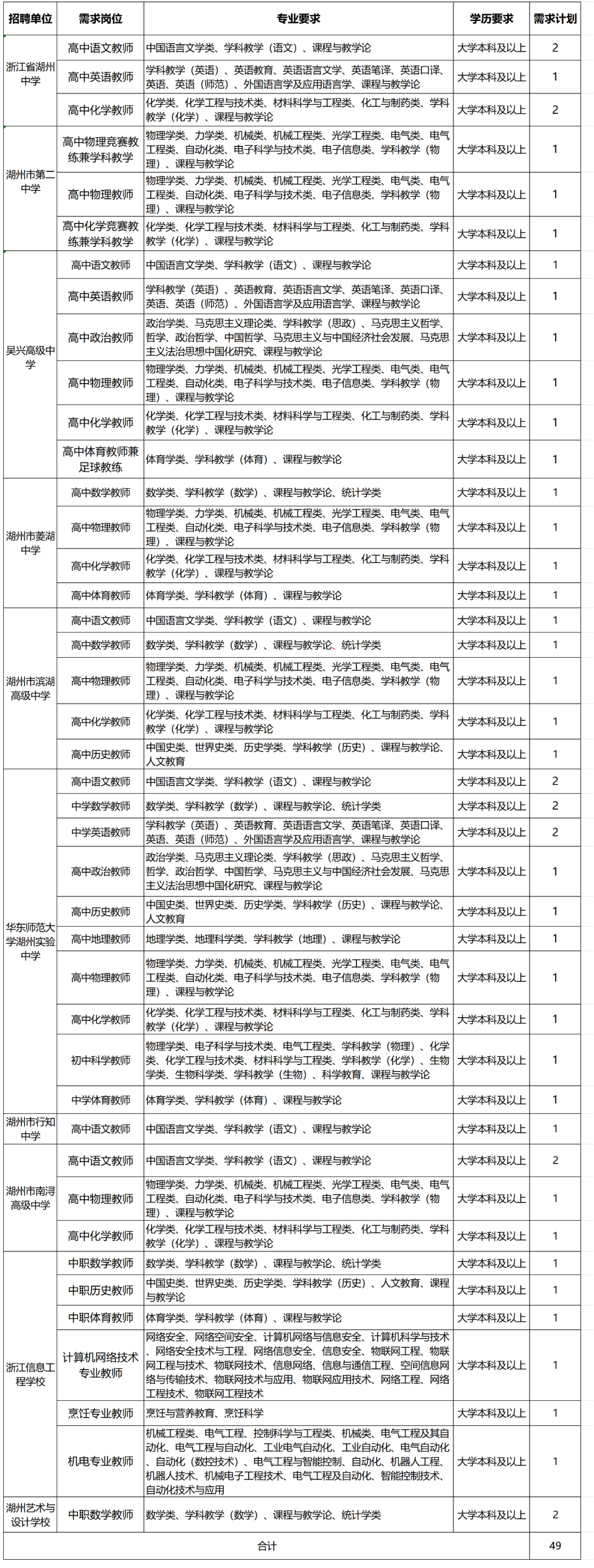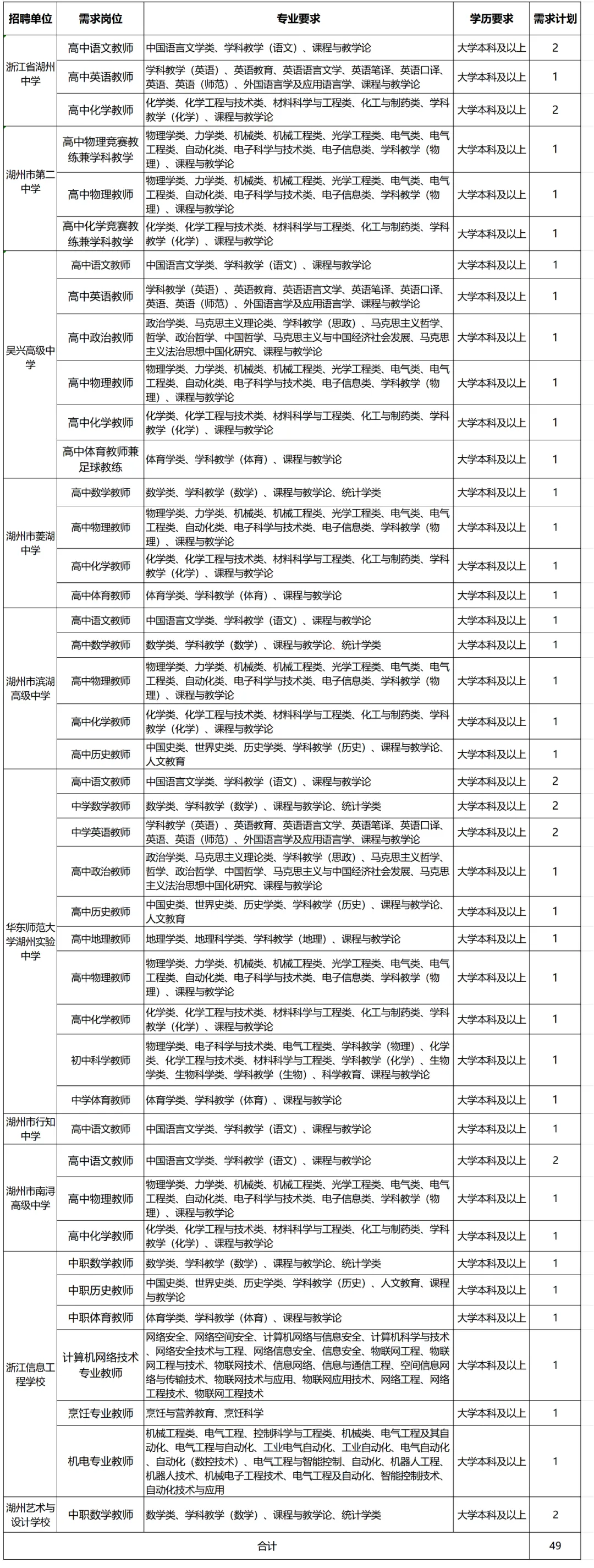 湖(hú)州市(shì)教育局組織直屬學校(xiào)面向全國(guó)及國(guó)(境)外(wài)高(gāo)校(xiào)優秀畢業(yè)生(shēng)公開(kāi)招聘教師(sh↔ī)若幹名。