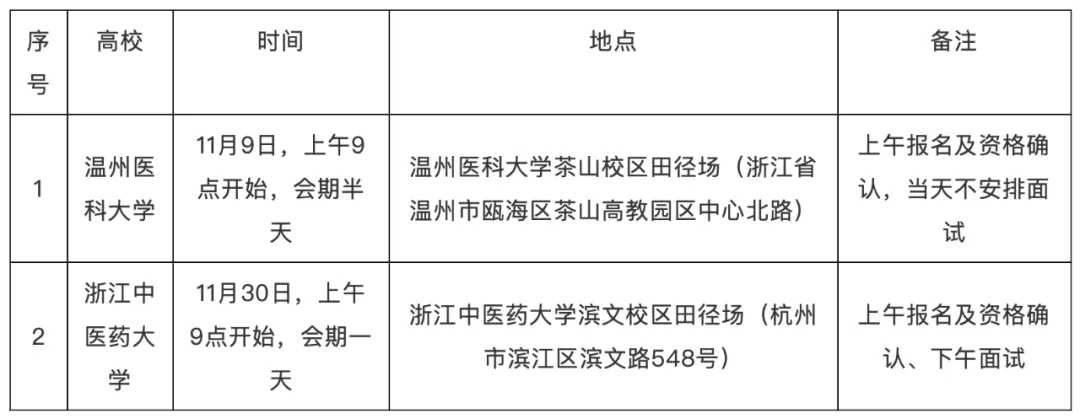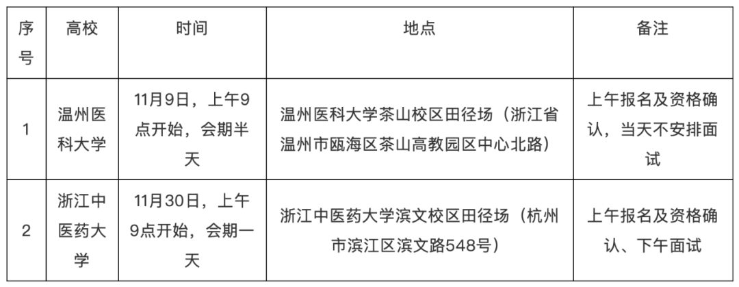 注:11月(yuè)9日(rì)溫州醫(yī)科(kē)大(dà)學招聘會(huì)隻進行(xíng)報(bào)名及資格确認,€當天不(bù)安排面試,兩場(chǎng)招聘會(huì)報(bào)名結束後,11月(yuè)30日(rì)下(xià)午在浙江中醫(yī)藥大(dà)學濱文(wén)校(xi€ào)區(qū)統一(yī)安排面試。