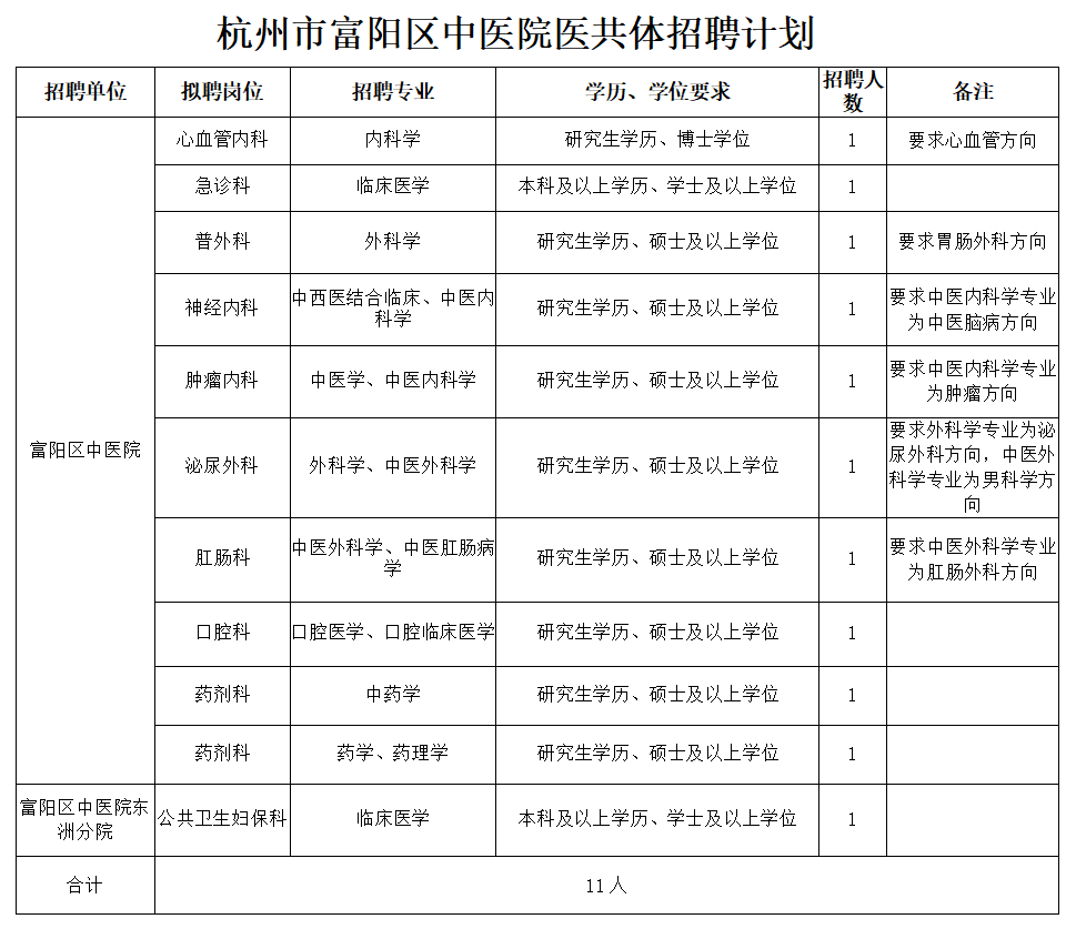 杭州富陽區(qū)衛生(shēng)健康局所屬醫(yī)共體(tǐ)、醫(yī)療衛生(shēng)單位共招聘事(shì)業(yè)編制(zhì)醫(yī)衛類專業(yè)♣技(jì)術(shù)人(rén)員(yuán)43名。
