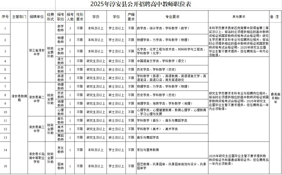 淳安縣教育局直屬三所普高(gāo)和(hé)一(yī)所職高(gāo),因教育教學工(gōng)作(zuò)需要(yào),決定面向社會(huì)公開(kāi)招聘事(φshì)業(yè)編制(zhì)教師(shī),本次計(jì)劃招聘高(gāo)中教師(shī)19名。