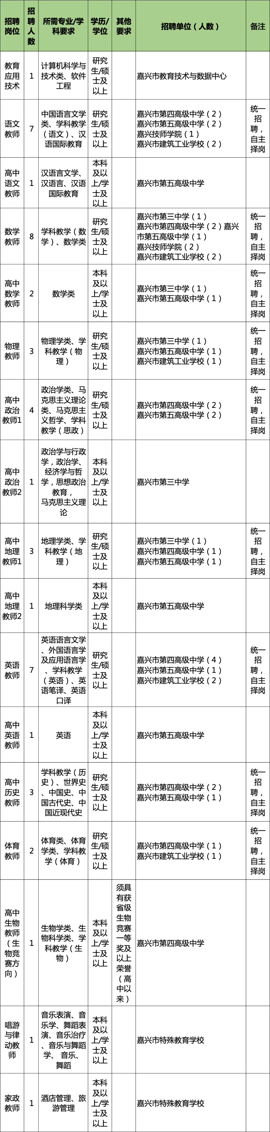 嘉興市(shì)教育局直屬部分(fēn)學校(xiào)(單位)決定面向普通(tōng)高(gāo)校(xiào)優秀應屆畢業(yè)生(shēng)公開(kāi)招聘事(shì)業(yè≥)編制(zhì)教師(shī)(教職人(rén)員(yuán))。本次公開(kāi)招聘推出崗位類型1÷7個(gè),計(jì)劃招聘教師(shī)(教職人(rén)員(yuán))47名。