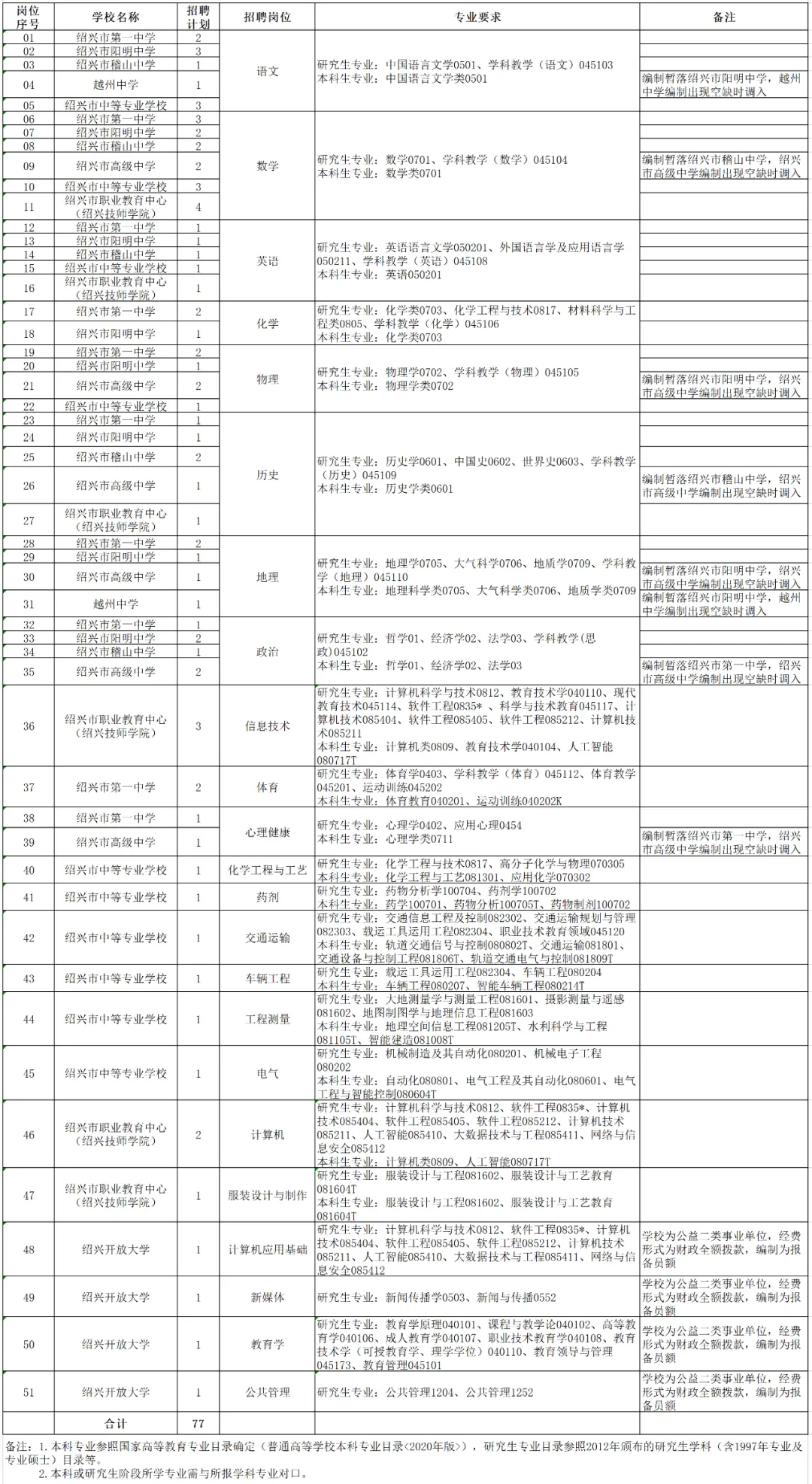 紹興市(shì)教育局決定公開(kāi)招聘市(shì)直學校(xiào)2025年(nián)新教師(shī)77人(rén)。
