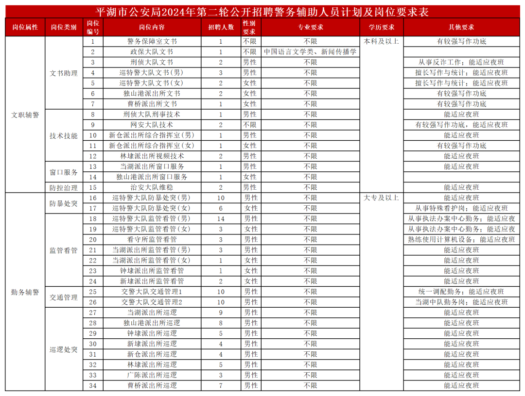 計(jì)劃面向社會(huì)公開(kāi)招聘警務輔助人(rén)員(yuán)131名,具體(tǐ)招聘崗位、招聘計(jì)劃♦等要(yào)求詳見(jiàn)附件(jiàn)1。