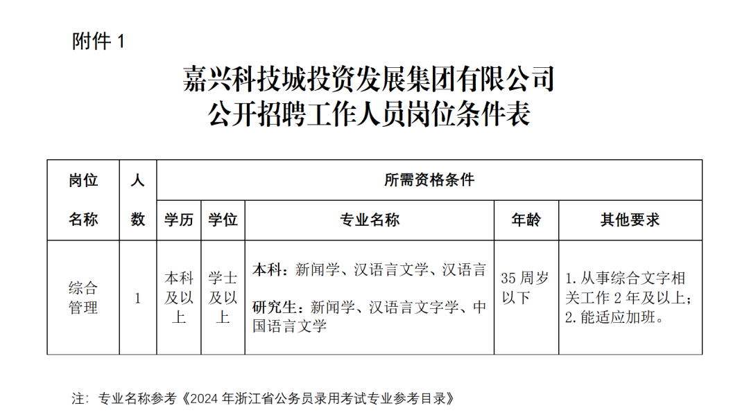 嘉興科(kē)技(jì)城(chéng)投資發展集團有(yǒu)限公司(以下(xià)簡稱:嘉科(kē)集團)于2013年(niπán)設立,注冊資本15億元,信用(yòng)評級AA+。為(wèi)加強國(guó)有(yǒu)企業(yè)人(rén)才隊伍建設,結♣合嘉科(kē)集團公司職能(néng)及崗位空(kōng)缺情況,經研究,決定面向社會(huì)公開(kāi)招聘國(g₩uó)企工(gōng)作(zuò)人(rén)員(yuán)1名,現(xiàn)将有(yǒu)關事(shì)項公告如(rú)下(xià):
