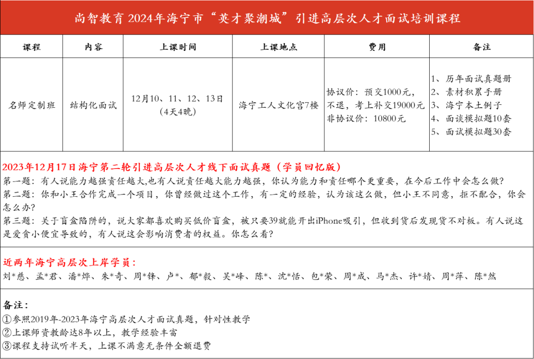 關于公布入圍2024年(nián)海(hǎi)甯市(shì)“英才聚潮城(chéng)”現(xiàn)場(c•hǎng)面試的(de)公告