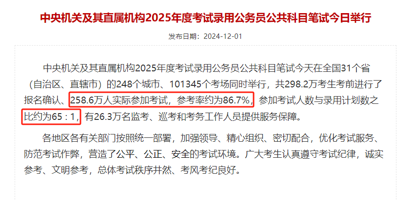 2025年(nián)度考試錄用(yòng)公務員(yuán)公共科(kē)目筆(bǐ)試已于12月(yuè)1日(rì)結束